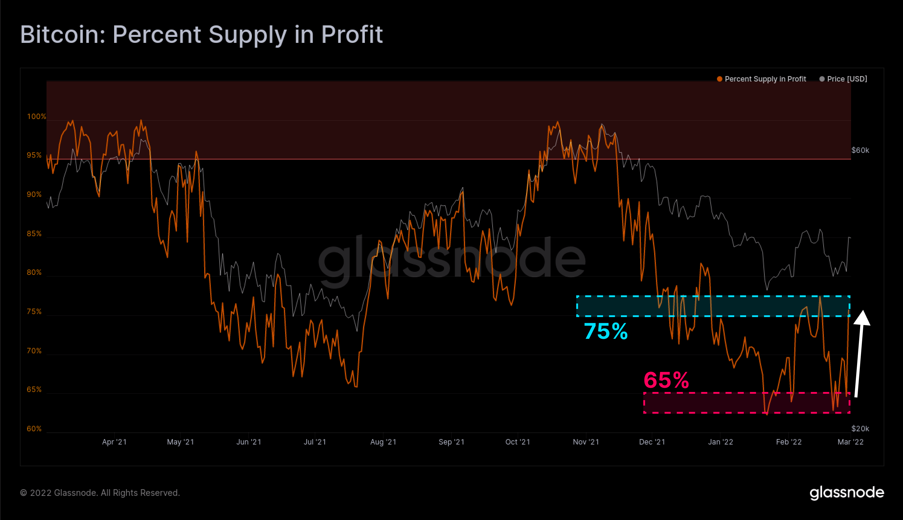 Additionally, the firm says the percentage of Bitcoin’s supply that is in profit shot up from 65% to 75% on Monday.