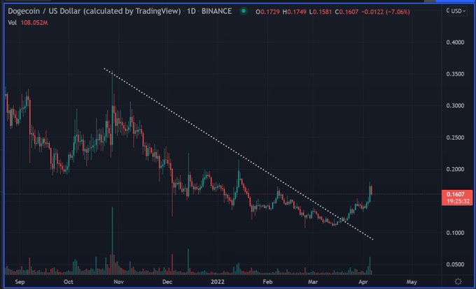 “Longed some Dogecoin on this pullback today after yesterday’s strong breakout on volume. Been a while since I have owned a meme coin but I’m here for it.”