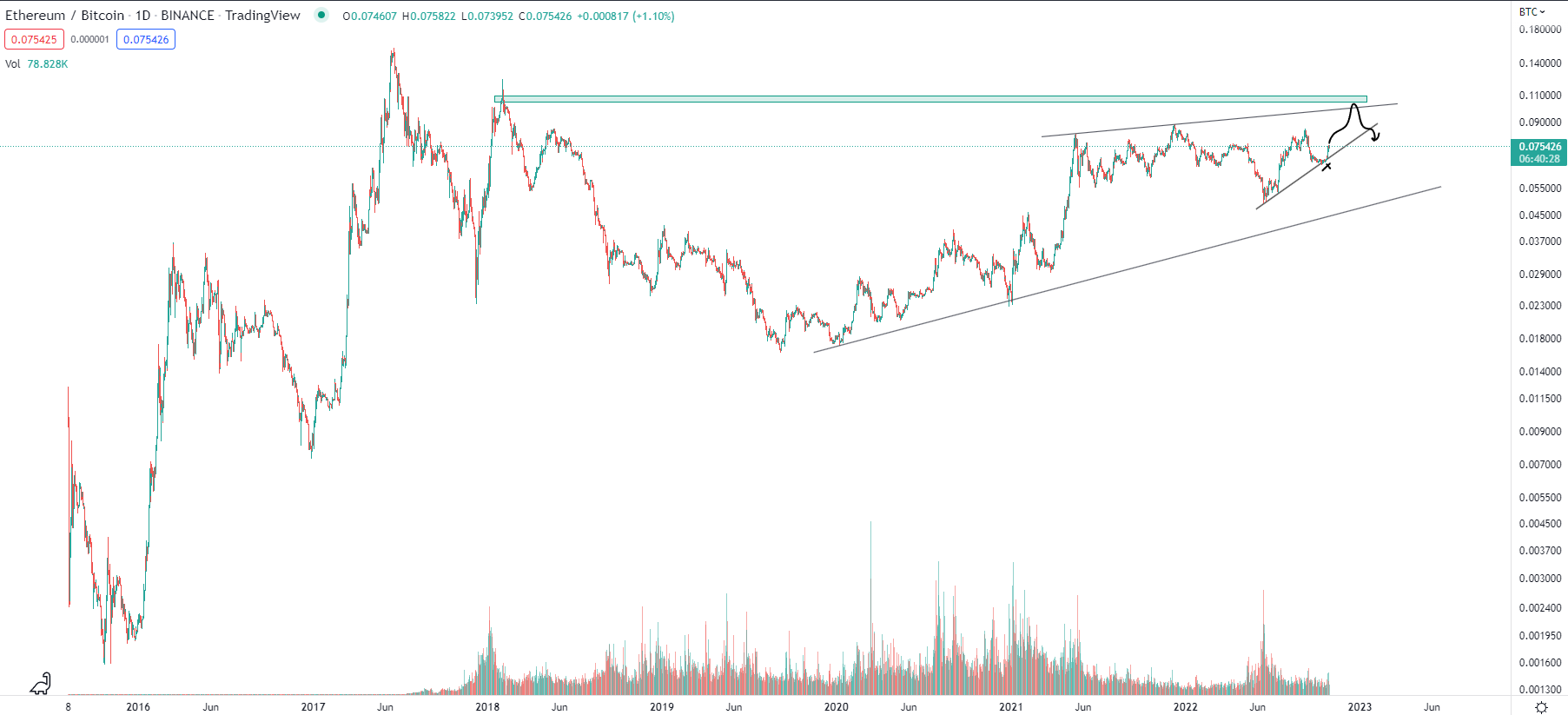“Basically see ETH outpacing until BTC breaks above the major HTF (high timeframe) diagonal downtrend in December or January.”