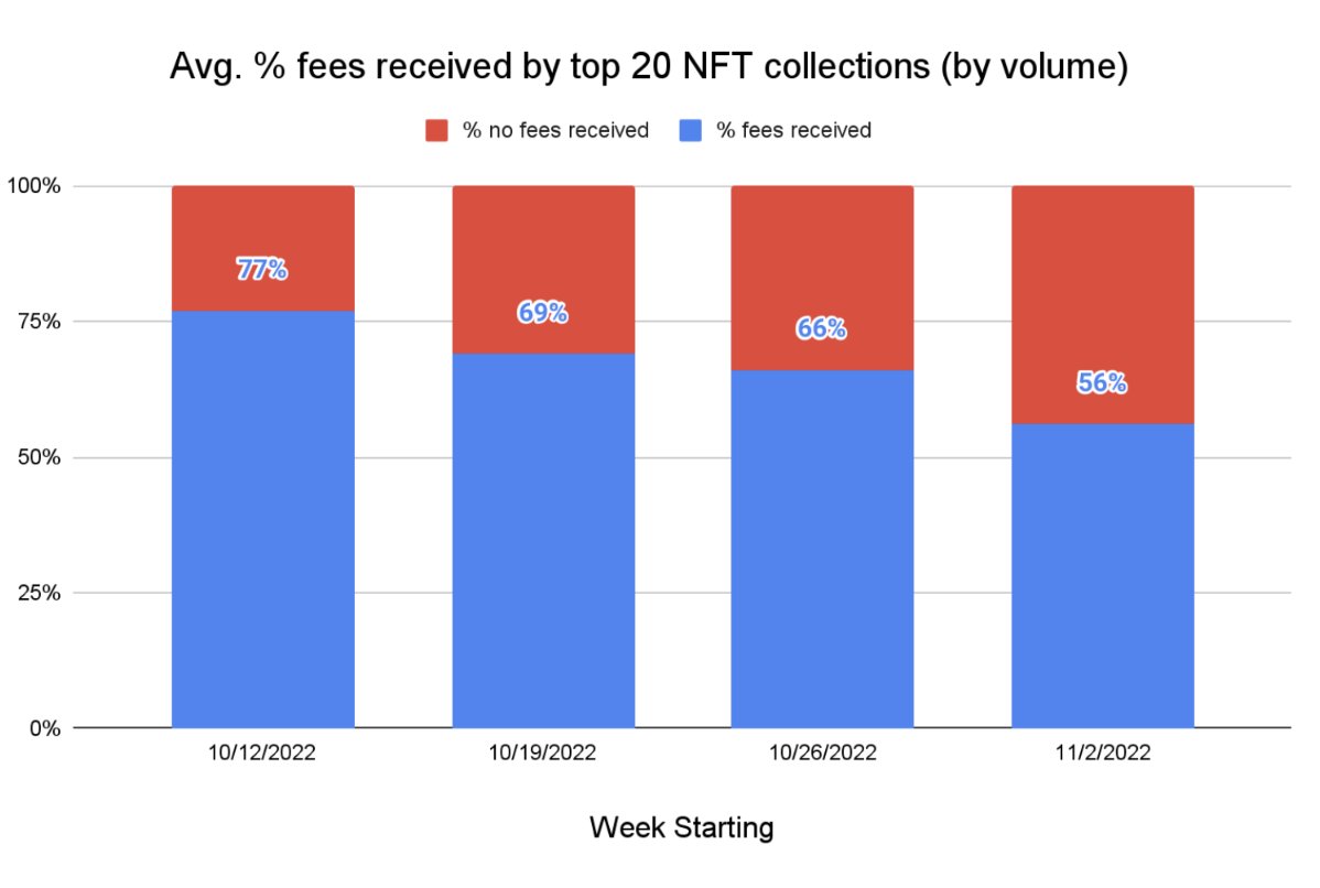Simply put, in the last week, almost half of the creator fees set by the top 20 collections were ignored. This amounts to well over $1 million for creators left on the table.”