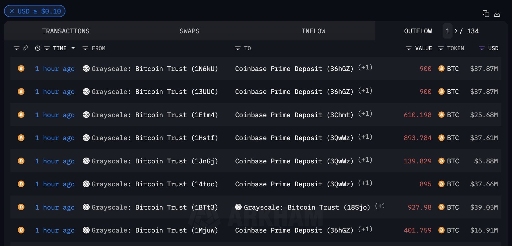 Today, Grayscale sent 6.9K BTC ($289.5M) to Coinbase.