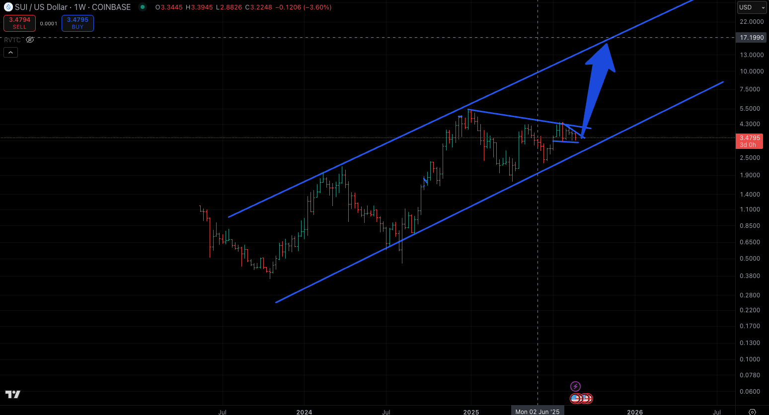 Based on a chart of Sui on the weekly time frame, it appears Pal is suggesting that Sui is forming a parallel ascending channel.