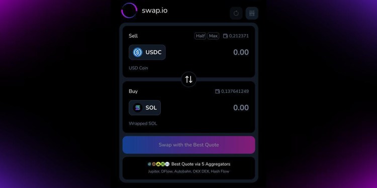 Swap.io operates a Solana-based cryptocurrency exchange specializing in multi-router aggregation.