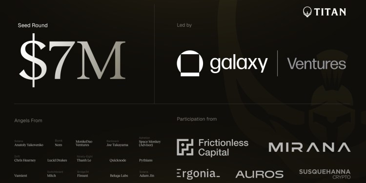 Titan, Solana’s premier meta-DEX (decentralized exchange) aggregator, today announced the completion of a $7 million seed round led by Galaxy Ventures.