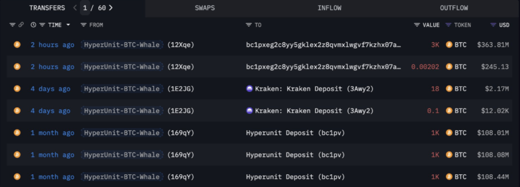 A colossal Bitcoin whale holding over $10 billion in BTC just sent another $363.81 million to the decentralized trading giant Hyperliquid.