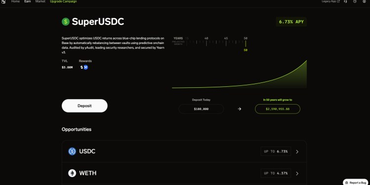 The flagship vault, SuperUSDC, delivers secure and effortless returns on Circle’s USDC stablecoin.