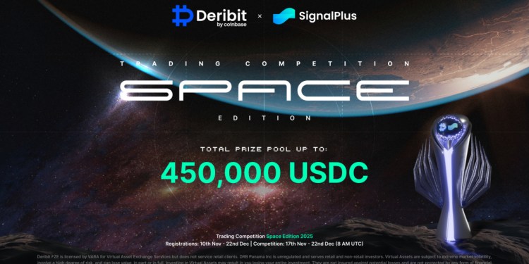 Deribit, a leading digital asset derivatives exchange, and SignalPlus, a leading provider of cutting-edge software and infrastructure solutions for crypto derivatives, today announced the launch of their latest trading competition, running from November 17 to December 22, 2025.